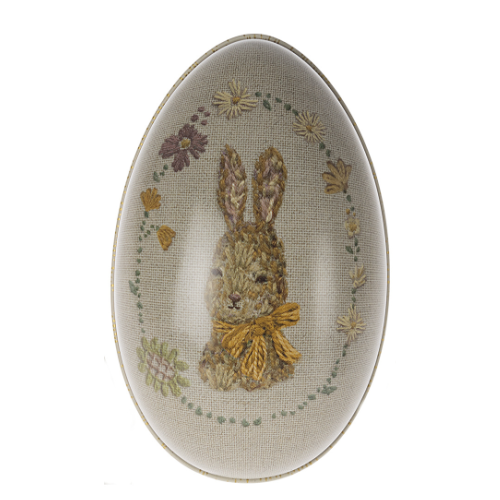 ¿No son adorables estos huevos de pascua? Hecho en mental, ilustrados con preciosos dibujos de pollitos, conejitos y flores, se pueden abrir para contener un pequeño regalo o unos dulces para regalar (peluche no incluido).
