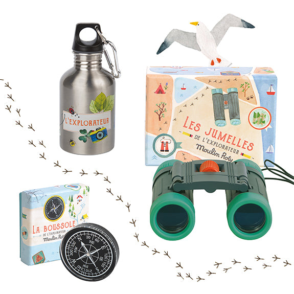 Ningún explorador que se precie saldría de expedición sin sus prismáticos. Sobre todo si son como estos, plegables, fáciles de manipular por las manos más pequeñas, resistentes y con un aumento de 8x para poder observar pájaros al vuelo.