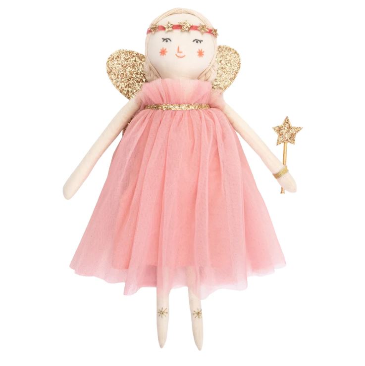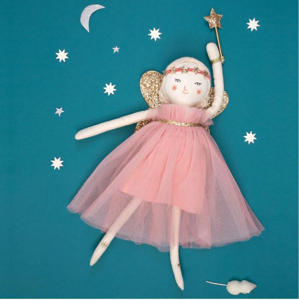 Freya, la muñeca hada será un regalo más maravilloso y es perfecta para horas de juego imaginativo. Ella está bellamente elaborada en algodón y tiene rasgos dulces dulces y pelo fino hilo blanco con hilo de oro. Está vestida con un vestido de tul rosa con brillantes alas de hada con glitter dorado, una diadema estrella brillante y una varita brillante.