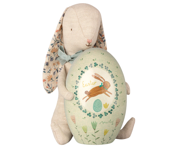 El Conejito Albin está hecho en suave lino de calidad. Tiene imanes  en sus manos para que pueda sostener el huevo de pascua (no incluido) o colgarse de cualquier pieza de metal.