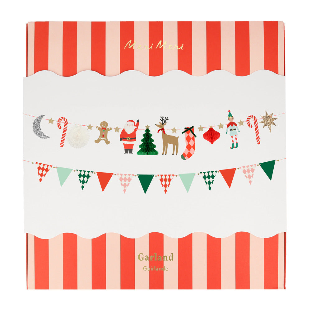 - Candycane a rayas y banderines de estrellas con brillo de oro, para unir a la guirnalda