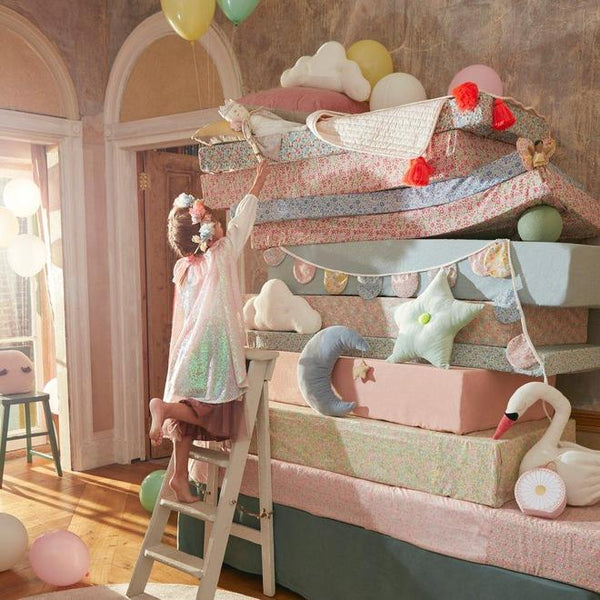 ¿Buscando una guirnalda que puedas usar sin descanso para celebraciones varias o decorar su dormitorio? Esta está hecha con diez colgantes de tela de diferentes estampados Liberty London