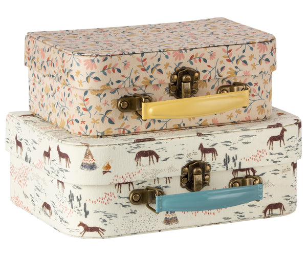 Estas dulces maletas con un adorable estampado Maileg son perfectas para almacenar juguetes favoritos, recuerdos del bebé, fotos... o para contener un regalo para el recién nacido.