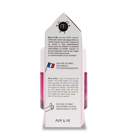 Para compartir ese momento cómplice madre&hija,  un esmalte Nailmatic original para mamá (vegano, sin Toluenos, sin Formaldehidos, sin Ftalatos ni Resinas de Formaldehidos)  y un Nailmatic Kids (lavable con agua tibia y jabón, lavable en la ropa, sin tóxicos). Un packaging precio en forma de caseta de playa que lo hace especialmente atractivo para regalar.